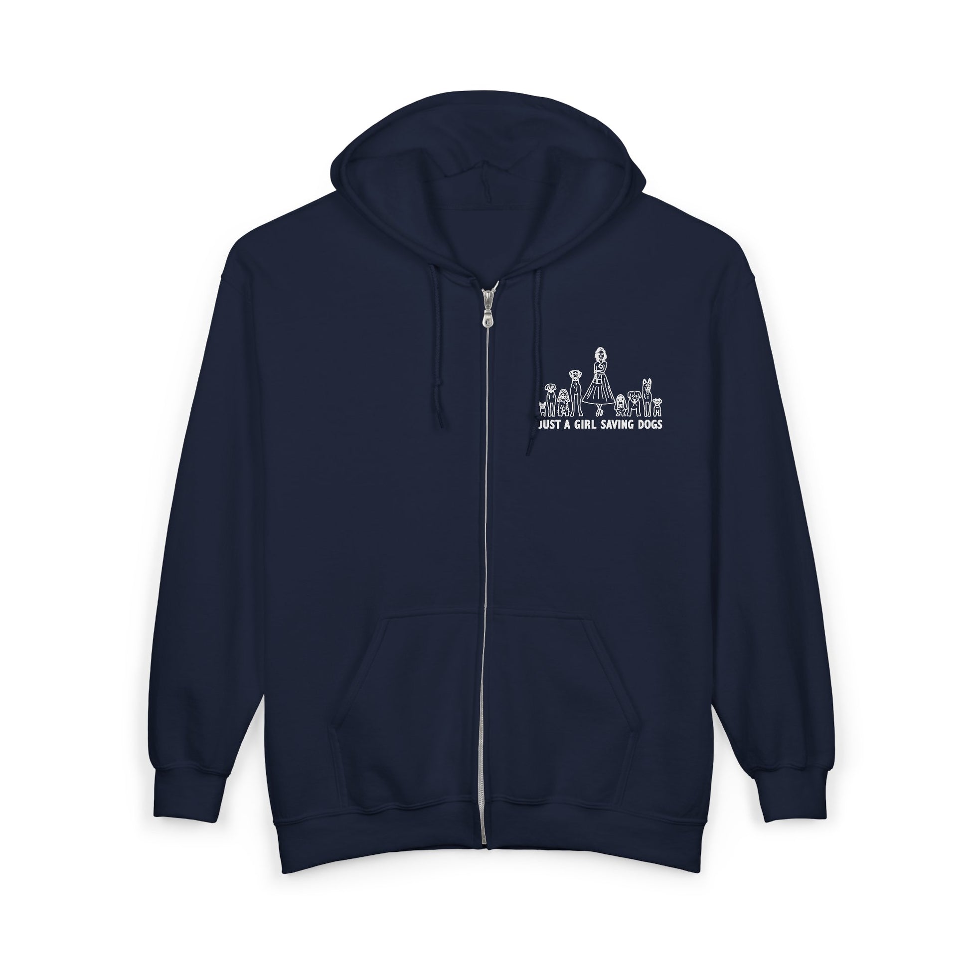 Just a Girl Saving Dogs Sketch Unisex Heavy Blend Hooded Sweatshirt, Cozy Zip-Up Sweatshirt